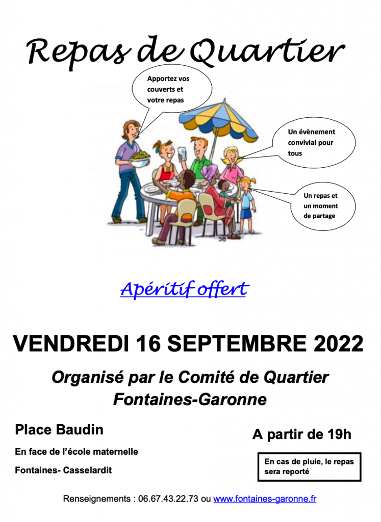 Venez nombreux au repas de quartier le 16 septembre Place Baudin !9 sept. 2022 (lien externe, ouverture dans une nouvelle fenêtre)